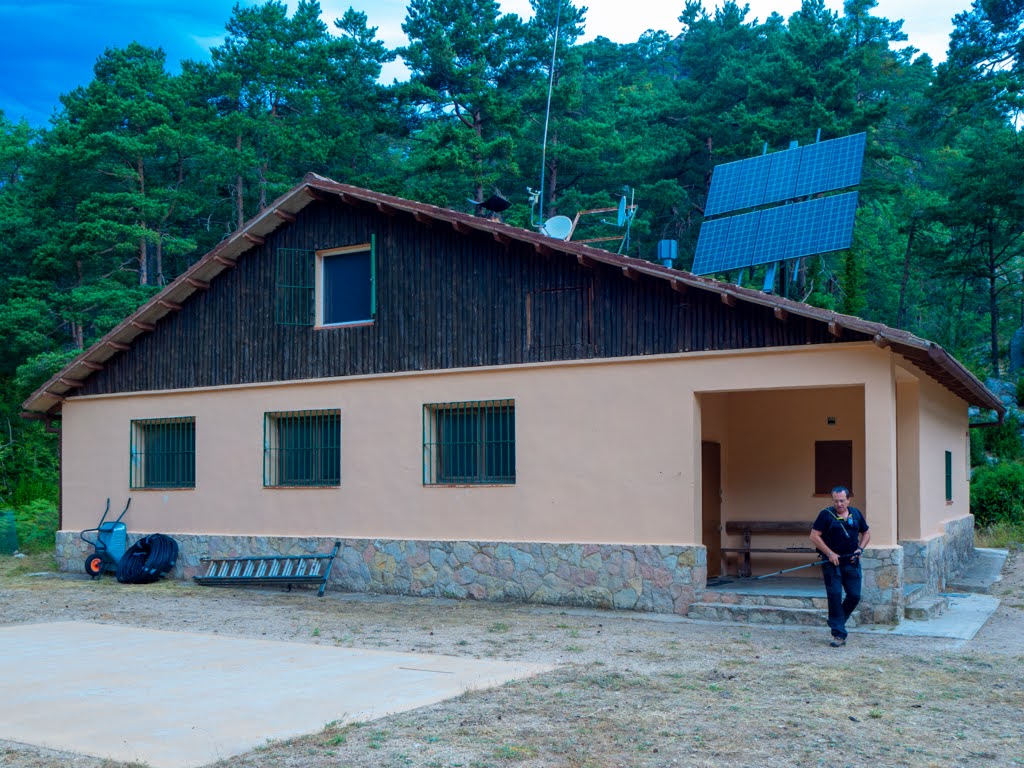 Finalizado un fuerte descenso se llega a un terreno plano. Después de una curva el refugio Font Ferrera se deja ver entre los pinos.